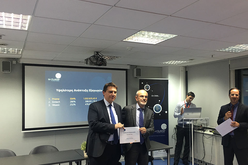 Prisma Electronics SA has been awarded for the highest growth in exports in the field of space technology on Friday, December 08, 2017, at the a2-innohub of Corallia, Athens.